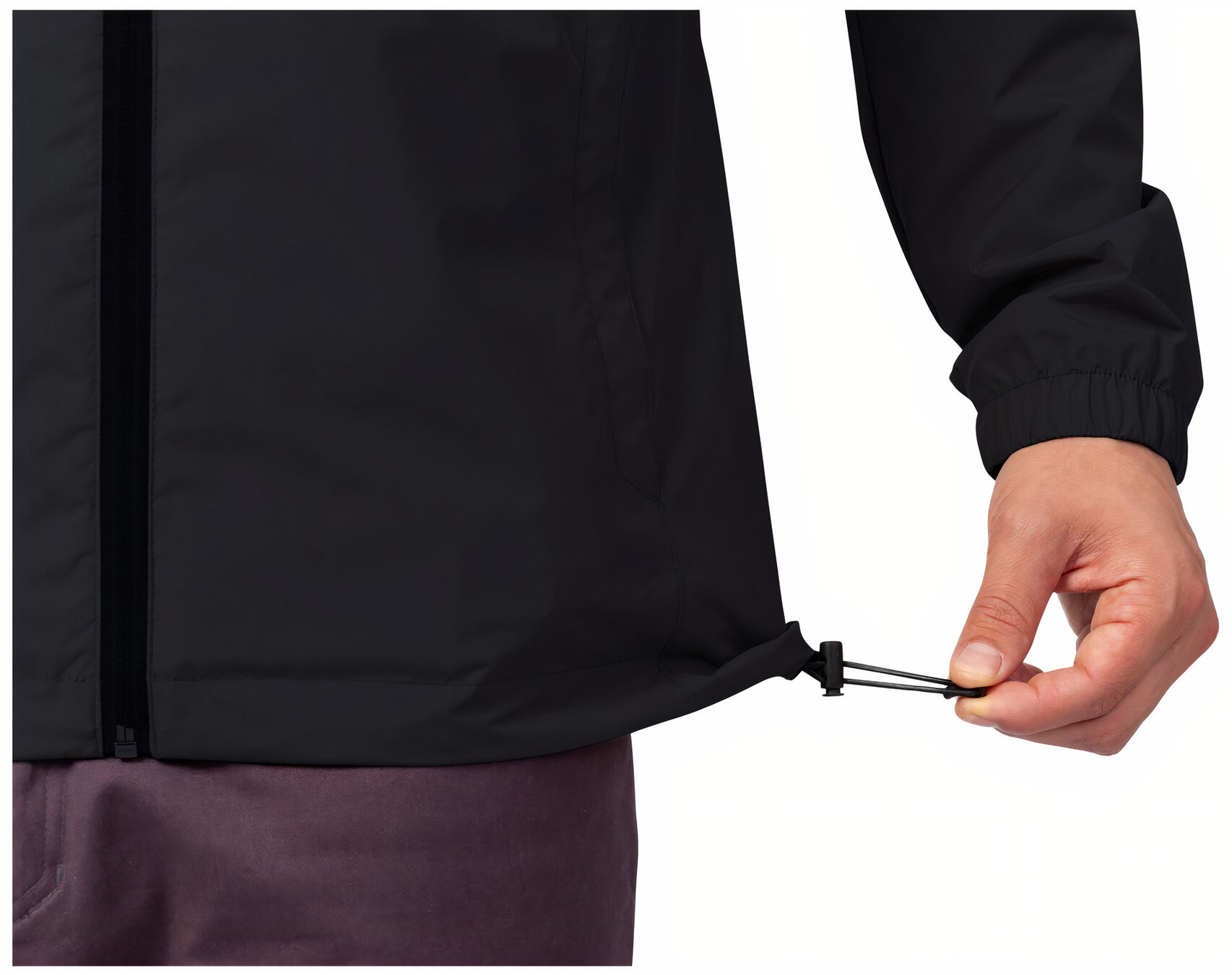 Waterproof and breathable jacket with a Resstex 8000 membrane. The hood is hemmed with an elastic band which is also found at the end of the pre-shaped sleeves. The bottom hem can be easily adjusted. The comfort and breathability of the jacket is enhanced by a mesh lining. The patented Bionic Finish ECO impregnation ensures high water resistance of the outer material and repels dirt. In addition, it contains no PFCs and is environmentally friendly. Taped main seams for overall waterproofness and two zip pockets. The jacket is suitable for hikes in the mountains or trips into the great outdoors.