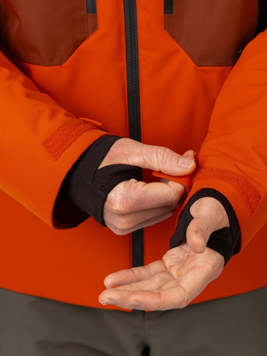 From waterproof YKK zips on the central zip and chest pockets, to underarm ventilation, an internal pocket system and a snow collar at the waist. Anatomically shaped sleeves with a zipped pocket for a ski pass are finished with a hook-and-loop hem. Internal elastic sleeve cuffs with a thumb hole reduce heat loss while keeping the snow where it belongs. The jacket and pants connection system makes it easy to clip on the Hannah Wiel ski pants.