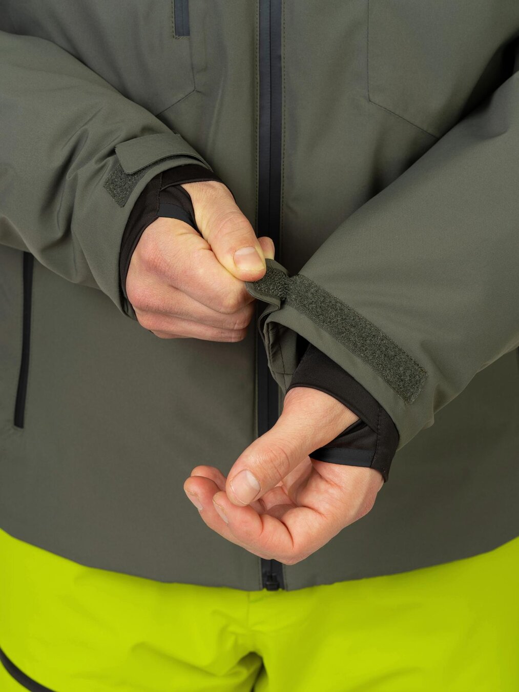 A technical cut, anatomically shaped sleeves with hook-and-loop cuffs, and inner elastic cuffs with thumbholes ensure comfort and a perfect fit. There’s also a sleeve pocket for your ski pass, a practical inner pocket system, and a key loop. All seams are taped, and key details are laminated for maximum durability in harsh weather conditions.