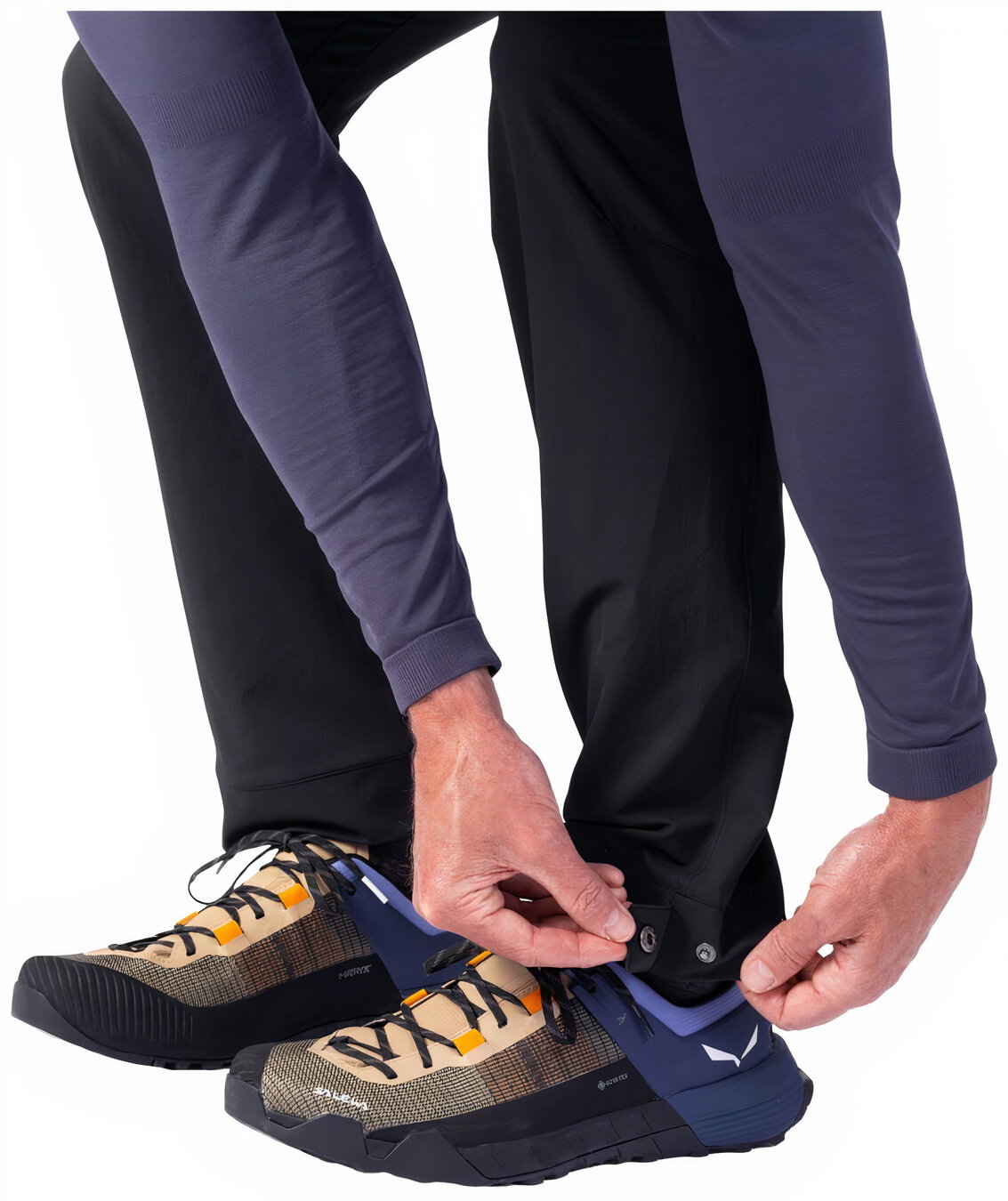 - Alpine Fit – freedom of movement even during demanding activity. - Waist adjustment with belt and a partly elasticated waistband. - Pockets: two main zipped hand pockets, plus rear and thigh pockets with zips. - Hem width adjustment at the ankles – easy to adapt to footwear and conditions.