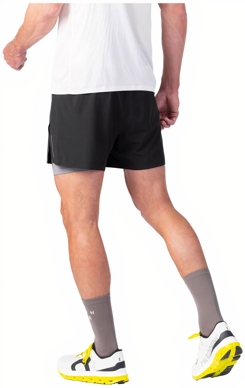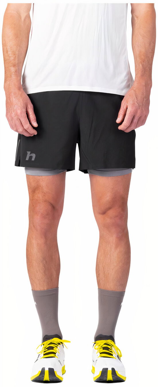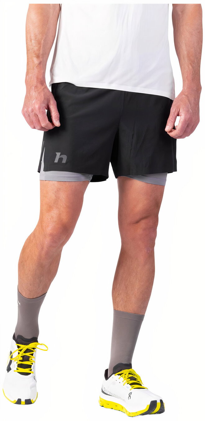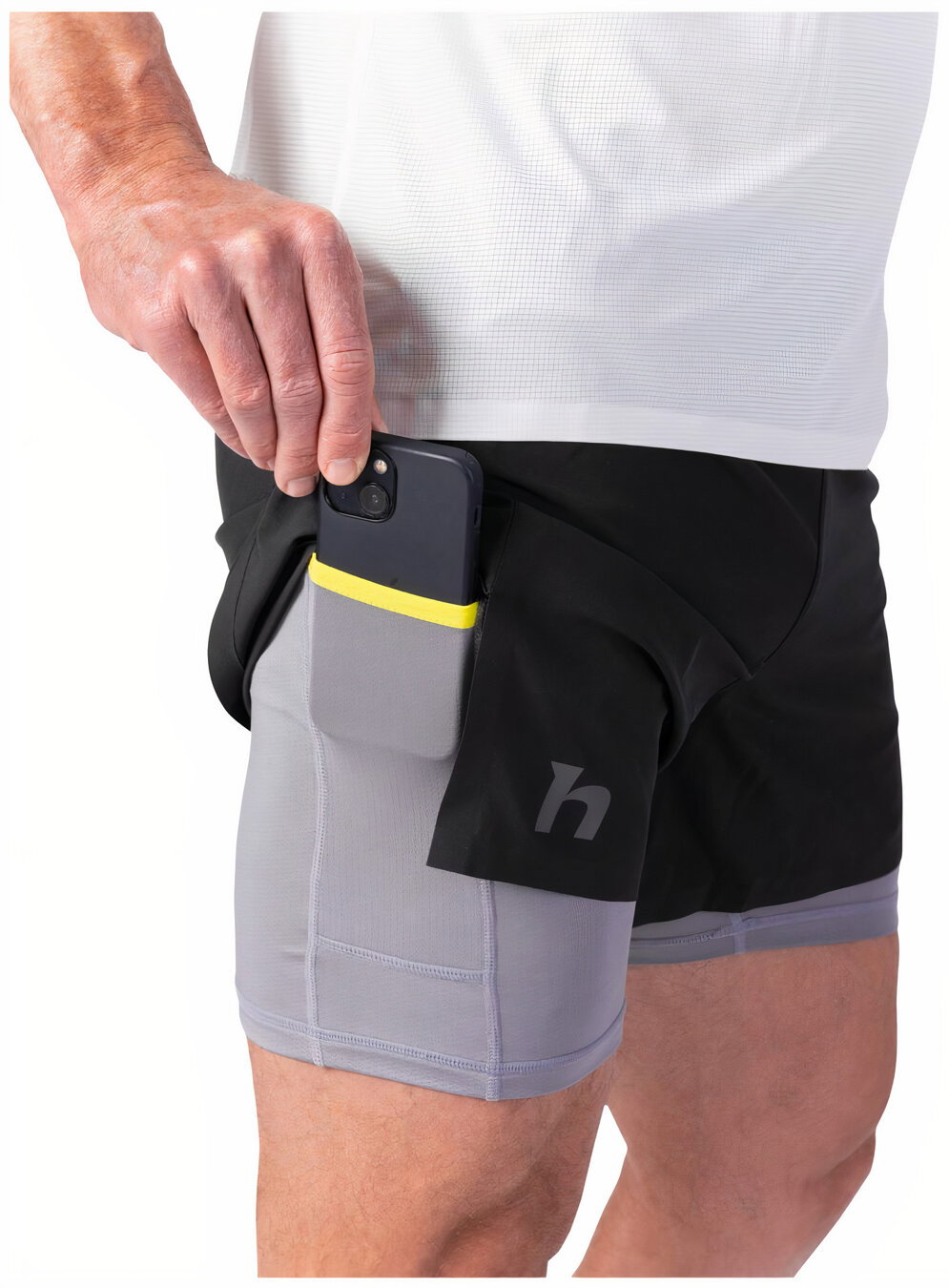 Men’s shorts Hannah Ash Shorts – extra comfort with integrated inner shorts. Light, stretchy AFT Stretch fabric meets supportive inner elastic shorts. An anti static finish boosts wearing comfort; elasticated waist with drawcord stays put; pockets carry the day’s essentials. Details: - Technical cut with bonded hems and clean bonded details to reduce chafing and keep the minimalist look. Use: - Ideal for running, trail, fitness and fast hiking – comfort, support and freedom to move.