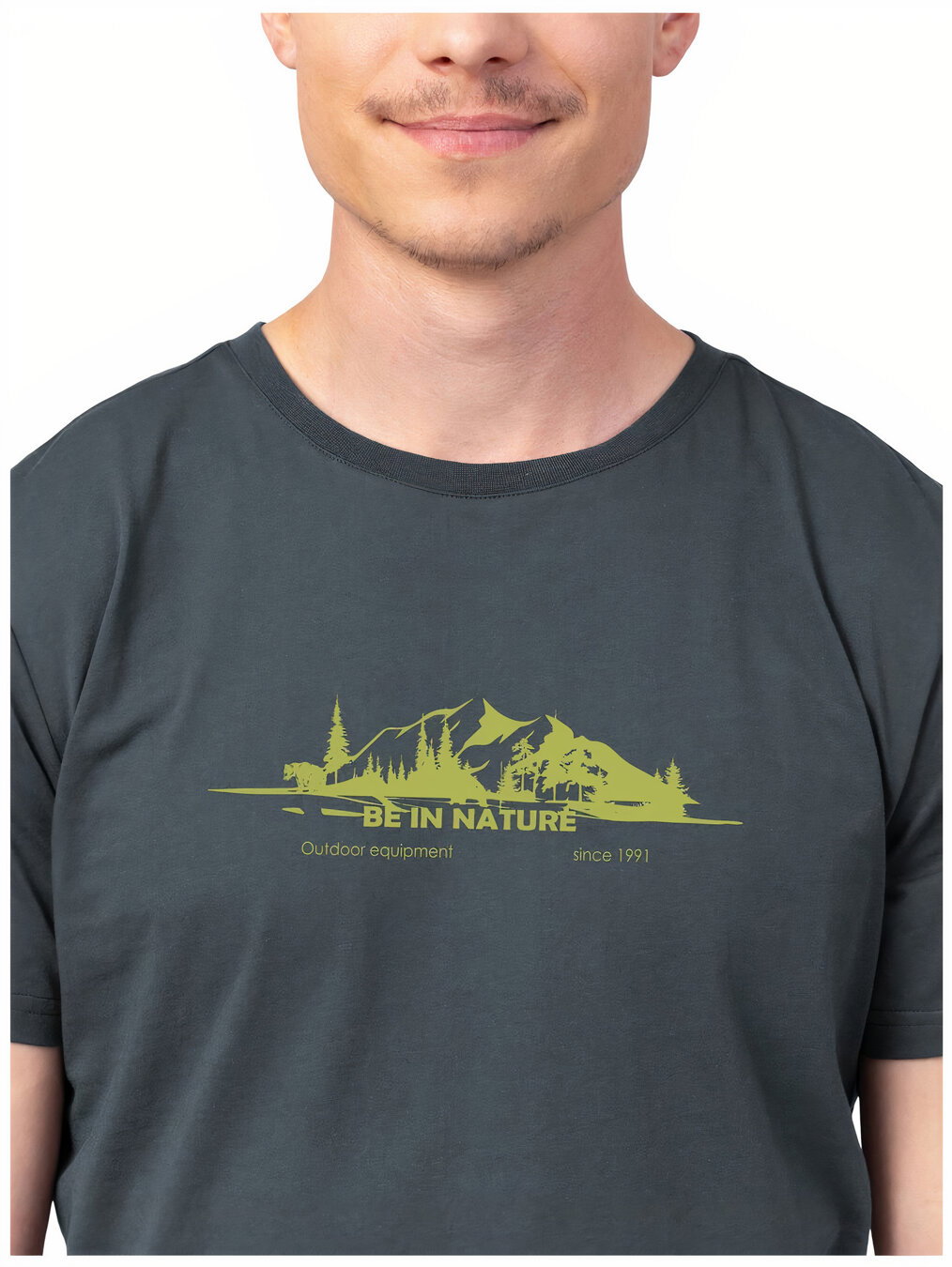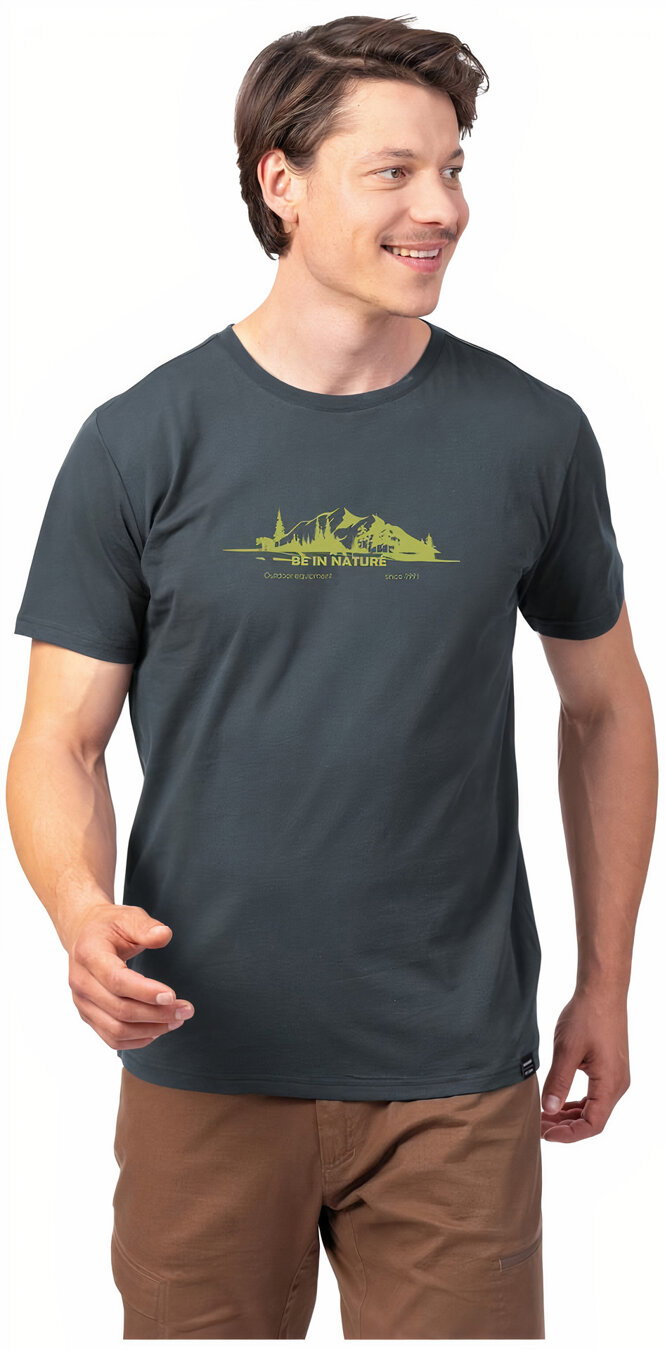 Men's T-shirt made of cotton and polyester blend.
